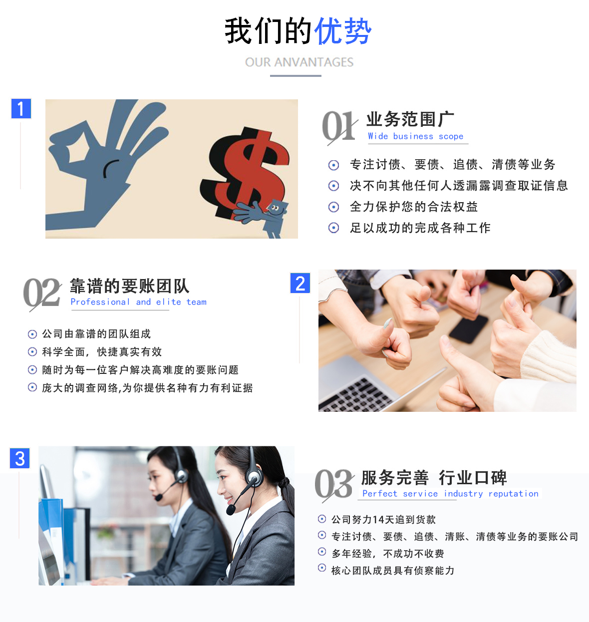 胜邦债务追讨公司作为讨债公司,我们是一家专业要债公司,在全国各地均有办事处,专注于为企业及个人客户提供合法合规债务催收服务。随着商业往来日益频繁,欠款违约现象屡见不鲜,许多客户因催收无门、取证困难、沟通受阻等问题遭受重大经济损失。为此,我们组建了一支由法律顾问、商务谈判专员、项目协调员组成的效率高的执行团队,为客户提供一站式要债解决方案。